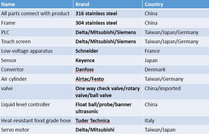 3. جميع المكونات التي تتلامس مع المنتج مصنوعة من الفولاذ المقاوم للصدأ 316 L المستوردة ، ومعالجتها بواسطة آلات CNC.